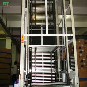 2、升降平臺的上下行程均可輸送物料,在升降平臺的一個循環(huán)過程中可使物料同時雙方向流動。